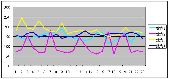 這里的四條線(xiàn),分別代表了一個(gè)座席員的情況,黃色這條線(xiàn)代表的座席員在1號(hào)的時(shí)候,平均通話(huà)時(shí)長(zhǎng)差不多是180秒,二號(hào)增加到250秒,之后慢慢減少到17號(hào)的150秒,以及23號(hào)的170秒。