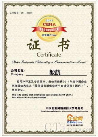 CTI論壇(ctiforum)10月31日消息(記者 潘婷婷): 10月20日,在上海舉行的展覽會上,廣州市毅航通信技術(shù)有限公司摘取了(國內(nèi))最佳語音增值業(yè)務平臺提供商的獎,體現(xiàn)了廣州市毅航通信技術(shù)有限公司在語音增值方面的市場領(lǐng)先地位。