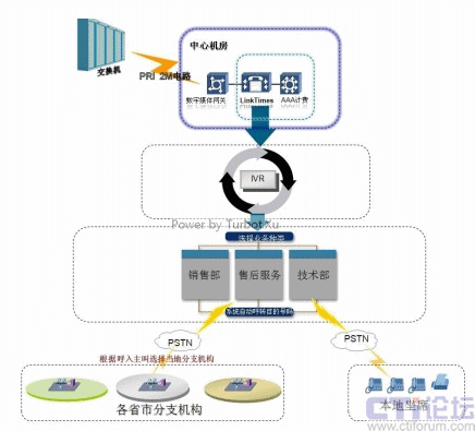 - 如客戶選擇技術(shù)部,則系統(tǒng)將引導(dǎo)客戶進(jìn)入設(shè)立在本地的技術(shù)支持隊(duì)列中,同樣通過呼叫轉(zhuǎn)移接通本地技術(shù)支持部門PSTN電話;