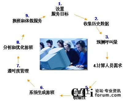 Impact 360 WFM提供一整套的集成排班管理應用程序,幫助呼叫中心在三個關鍵并且時常是沖突的要素之間作出優(yōu)化。他們是:客戶的滿意度、員工的的滿意度與穩(wěn)定性,以及運營的成本。在排班管理過程中,WFM采用如下基本流程: