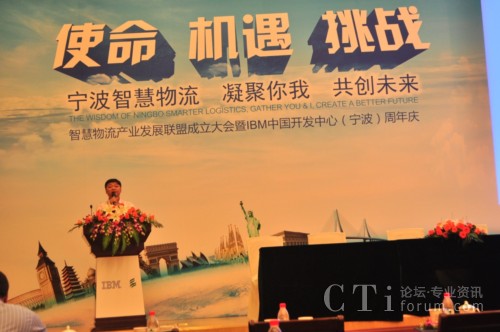 CTI論壇(ctiforum)6月15日消息(記者 歐陽(yáng)): 6月12日,“智慧物流產(chǎn)業(yè)發(fā)展聯(lián)盟成立大會(huì)”在寧波召開,寧波市副市長(zhǎng)陳仲朝、寧波市政府副秘書長(zhǎng)陳炳榮、寧波市科技局黨組書記、局長(zhǎng)黃利、寧波國(guó)家高新區(qū)管委會(huì)主任王海國(guó)、IBM全球副總裁兼中國(guó)開發(fā)中心總經(jīng)理王陽(yáng)、八百客副總裁李淼等出席此次大會(huì)。