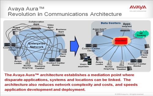 在當(dāng)今經(jīng)濟(jì)形勢(shì)不容樂觀的背景之下,很多的企業(yè)正在實(shí)施全球的整合,比如說一家企業(yè)可能使用Avaya設(shè)備并放在倫敦,香港的北電設(shè)備,和法蘭克福的西門子設(shè)備,這樣的一個(gè)格局也使得Aura這樣的平臺(tái)能夠帶來很大的管理便利性。
