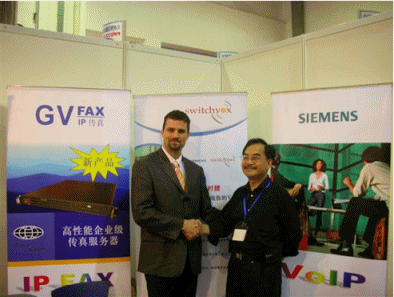 美國訊時(shí)捷科技公司作為IP-PBX專業(yè)提供商于2006年5月23-26日參加了最具權(quán)威的2006中國國際信息通信展覽會(huì),在上海光大會(huì)展中心的B019展位展示了Switchvox IPX與戰(zhàn)略合作伙伴Siemens配套IP終端話機(jī)。此次展會(huì),我們還推出了企業(yè)級(jí)新一代的IP傳真服務(wù)器GV-FAX,此次大會(huì)吸引了眾多全國的渠道代表、廠商、集成商和媒體參加,對(duì)產(chǎn)品感興趣的來賓絡(luò)繹不絕。