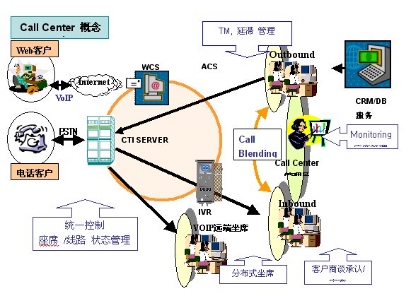 CallCenter系列CTI中間件產(chǎn)品包括:ACD智能路由分配;IVR多媒體語(yǔ)音交互應(yīng)答;IVRBuilder業(yè)務(wù)生成解釋子系統(tǒng);CallManager統(tǒng)一控制臺(tái);CMS系統(tǒng)實(shí)時(shí)監(jiān)控;管理者統(tǒng)計(jì)報(bào)表系統(tǒng);ACS計(jì)劃呼叫管理;RecordManager全程錄音管理;SoftPhone座席應(yīng)用工具;VOIP遠(yuǎn)端座席;WEB呼叫服務(wù);CRM集成開(kāi)發(fā)平臺(tái)。