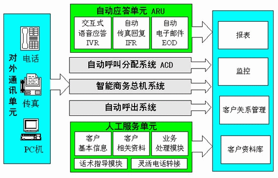 ACD(自動(dòng)呼叫分配)是呼叫中心有別于一般的熱線電話系統(tǒng)的重要部分,在一個(gè)呼叫中心中,ACD成批的處理來(lái)話呼叫,可根據(jù)用戶類別、客戶支持的忙閑統(tǒng)計(jì)、客戶支持的服務(wù)能力、不同時(shí)段、主叫用戶的號(hào)碼、該用戶曾聯(lián)絡(luò)過(guò)的客戶支持、客戶支持的專業(yè)技能等級(jí)等信息并將這些來(lái)話進(jìn)行分配給具有相關(guān)職責(zé)或技能的各個(gè)業(yè)務(wù)代理。ACD提高了系統(tǒng)的效率,減少了客戶服務(wù)中心系統(tǒng)的開銷,并使公司能更好的利用客戶資源。