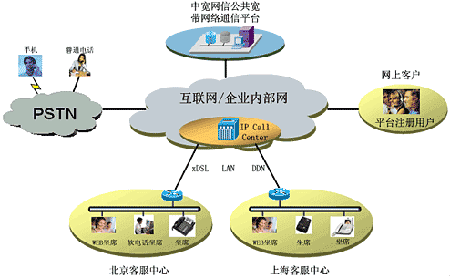 - IP Call Center接入中寬網(wǎng)信寬帶電話服務可使企業(yè)IP呼叫中心成為面向全球PSTN及網(wǎng)上用戶的呼叫中心系統(tǒng)。
