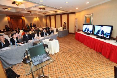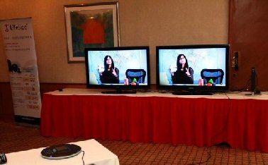 為了更好地展示新一代視頻系統(tǒng),LifeSize公司現(xiàn)場(chǎng)接通了美國(guó)總部的視頻會(huì)議畫面,畫面逼真流暢。LifeSize公司創(chuàng)始人、首席執(zhí)行官Craig