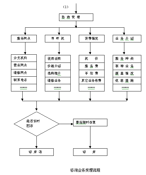 咨詢主要是回答客戶有關(guān)臺席各項業(yè)務(wù)種類、資費標(biāo)準(zhǔn)、服務(wù)網(wǎng)點及優(yōu)惠措施等問題,要求以自編數(shù)據(jù)庫或業(yè)務(wù)手冊為基礎(chǔ),實時予以回答。一時無法解釋清楚的,建議客戶留下聯(lián)系電話,將由專人負(fù)責(zé)答復(fù)。