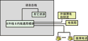 圖2 用通用模塊卡構(gòu)成8外線+3座席的CTI系統(tǒng)