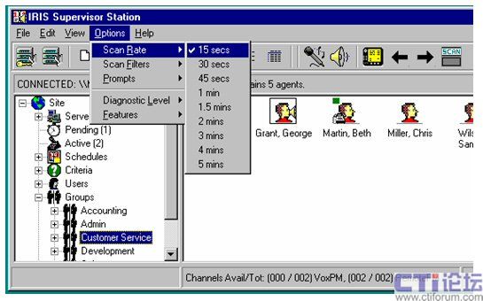 同時(shí)IRIS還可對(duì)座席工作的狀態(tài)進(jìn)行分組實(shí)時(shí)監(jiān)控或監(jiān)聽、可直觀的了解的座席的狀態(tài)(離席、入席、電話中、電話待命中、已規(guī)劃中);可對(duì)座席人員進(jìn)行人員跟蹤的實(shí)時(shí)監(jiān)聽。
