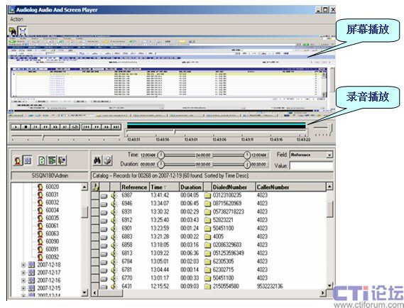 在對(duì)座席電話進(jìn)行語音錄音的同時(shí),Audiolog Screen Capture可對(duì)座席的電腦屏幕的變化及座席進(jìn)行業(yè)務(wù)的操作進(jìn)行同步記錄,可在回聽播放電話錄音的同時(shí),對(duì)座席在電腦屏幕上整個(gè)業(yè)務(wù)流程進(jìn)行重播。