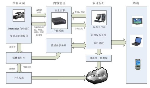 節(jié)目制作平臺主要負責(zé)節(jié)目的采編,接收節(jié)目源的數(shù)字視頻信號和模擬視頻信號進行實時/超實時的轉(zhuǎn)碼,并同時進行自動編目、歸檔,滿足系統(tǒng)不同應(yīng)用的要求。另外,各資源建設(shè)成員單位或各地、州、市遠程辦按照省遠程辦的統(tǒng)一部署,加工各自類別的課件,采用人工傳送介質(zhì)或利用VPN實現(xiàn)專網(wǎng)的方式送交到資源庫系統(tǒng)中,實施統(tǒng)一的存儲和管理。