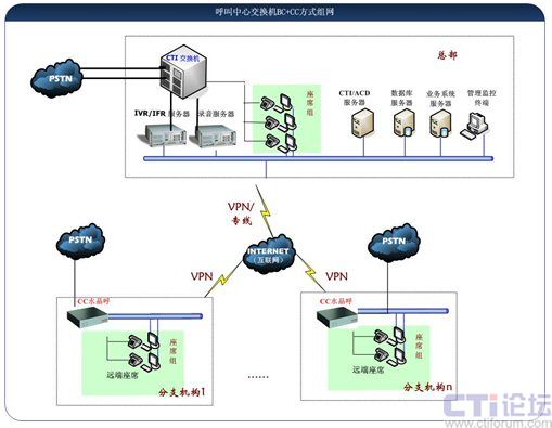 圖二:辦公與呼叫中心融合的物理組網(wǎng)圖