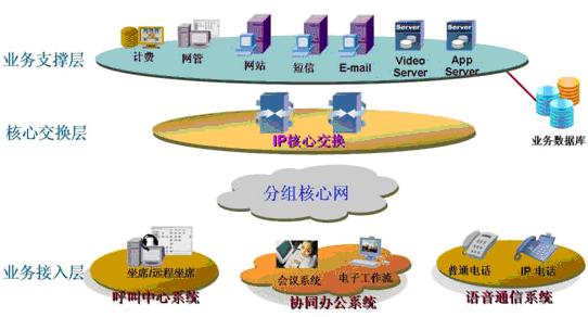 業(yè)務(wù)支撐層:計費、網(wǎng)管、多媒體視頻、應用服務(wù)器等各種功能服務(wù)器?膳c用戶的業(yè)務(wù)數(shù)據(jù)庫對接,為整個業(yè)務(wù)提供有力的支撐平臺。確保有效快速的處理呼叫流程、提高工作效率,評估呼叫中心的表現(xiàn)。