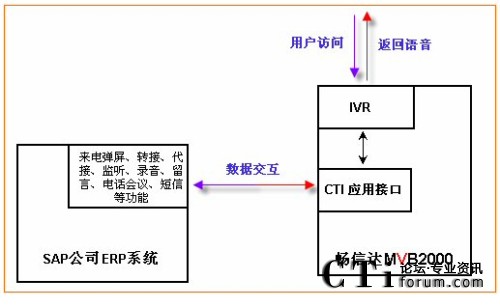 通過(guò)集成,不但可以實(shí)現(xiàn)與SAP公司ERP系統(tǒng)的實(shí)時(shí)數(shù)據(jù)傳輸,實(shí)現(xiàn)客戶(hù)管理、日常辦公,并且可使ERP系統(tǒng)上具有:點(diǎn)擊外呼、批量外呼、來(lái)電彈屏、收聽(tīng)錄音、查看報(bào)表、監(jiān)控電話線路等更多增值功能,詳細(xì)接口內(nèi)容見(jiàn)《MVB2000