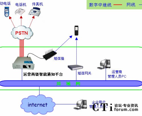 運營商管理人員通過局域網(wǎng)或者internet網(wǎng)絡(luò)訪問智能通知平臺,管理和維護企業(yè)用戶的帳戶信息,并為企業(yè)用戶提供個性化功能配置。