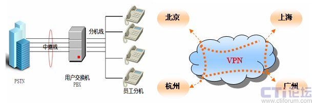 企業(yè)的傳統(tǒng)通信應(yīng)用,在語(yǔ)音電話方面,主要是透過傳統(tǒng)PSTN,通過中繼線連接企業(yè)交換機(jī)。數(shù)據(jù)應(yīng)用方面,分布在全國(guó)各個(gè)省市、自治區(qū)的分支機(jī)構(gòu)主要通過Internet,以E-mail方式聯(lián)絡(luò)。