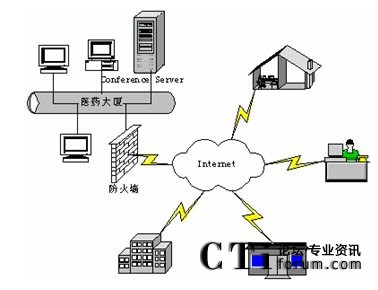 視頻會議服務(wù)器設(shè)置在上?偛浚ㄟ^電信的6M帶寬接入互聯(lián)網(wǎng),并配備有廣域網(wǎng)靜態(tài)IP地址。下屬生產(chǎn)基地和分支機(jī)構(gòu)通過電信ADSL接入和光纖接入等方式接入互聯(lián)網(wǎng)。這些點(diǎn)能夠?qū)崿F(xiàn)網(wǎng)絡(luò)視頻會議通訊,進(jìn)行音頻、視頻和數(shù)據(jù)的多方溝通。