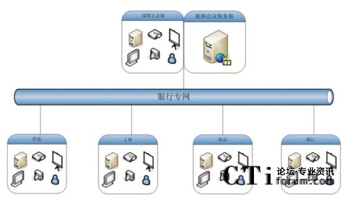 如圖,大新銀行視頻會(huì)議系統(tǒng)應(yīng)用規(guī)模為5個(gè)點(diǎn),包括香港、深圳、上海、南京、鎮(zhèn)江,服務(wù)器部署在深圳用來保證香港和內(nèi)地的鏈接效果,服務(wù)器出口帶寬為5M共享,各分會(huì)場(chǎng)通過專網(wǎng)訪問服務(wù)器。在這個(gè)網(wǎng)絡(luò)平臺(tái)上,紅杉樹網(wǎng)絡(luò)視頻會(huì)議所提供的高質(zhì)量音視頻圖像、方便易用的文檔、文件共享數(shù)據(jù)功能,使得大新銀行能夠在這個(gè)平臺(tái)上進(jìn)行從桌面討論到會(huì)議室正式會(huì)議等各種規(guī)模的應(yīng)用。在這個(gè)平臺(tái)上,除了進(jìn)行日常例會(huì)、業(yè)務(wù)交流等常見的應(yīng)用之外,業(yè)務(wù)培訓(xùn)、異地招聘等也是經(jīng)常進(jìn)行的內(nèi)容。業(yè)務(wù)人員利用數(shù)據(jù)功能,把平常培訓(xùn)很難懂的新銀行產(chǎn)品、費(fèi)率等進(jìn)行介紹,節(jié)約了以前培訓(xùn)所花費(fèi)的大量精力和時(shí)間,為新產(chǎn)品迅速占領(lǐng)市場(chǎng)掌握了主動(dòng)。