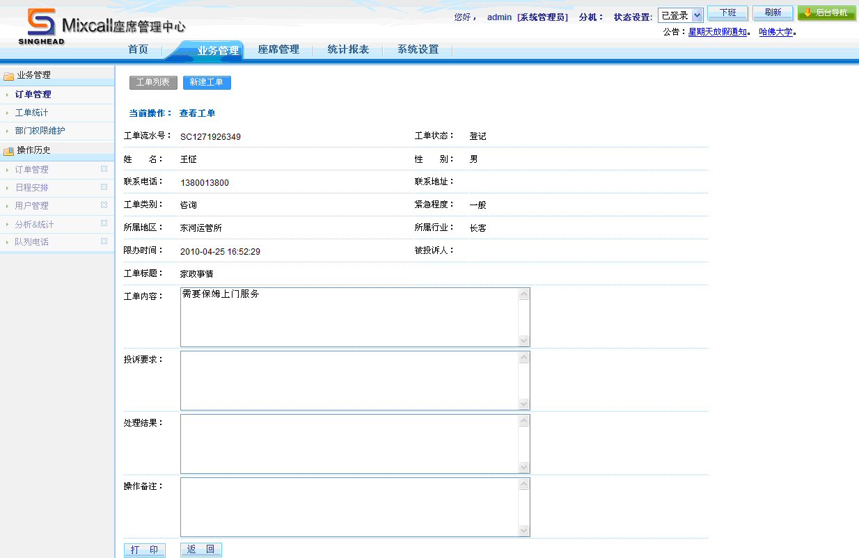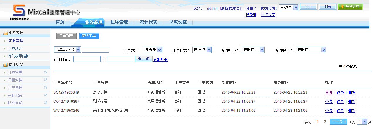 通過工單統(tǒng)計功能,座席人員可以看到所屬權(quán)限的所有工單和狀態(tài)。
