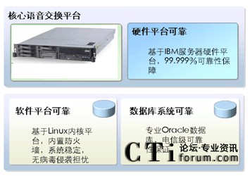 “網(wǎng)音托管”的核心IP語音平臺采用采用全球頂級的 VCX V7000系列IP語音交換平臺,基于IBM服務(wù)器硬件平臺、專業(yè)Oracle數(shù)據(jù)庫、基于Linux內(nèi)核平臺,內(nèi)置防火墻,提供電信級可靠保證。同時還擁有一套引以自豪的應(yīng)用軟件開發(fā)管理規(guī)范。各部分模塊都是經(jīng)過多年應(yīng)用的成熟產(chǎn)品,充分保證了系統(tǒng)的穩(wěn)定性和可靠性。