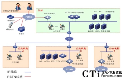 該結(jié)構(gòu)是將呼叫中心的全部設(shè)備(設(shè)備由網(wǎng)音提供)都部署在用戶現(xiàn)場,用戶可以以企業(yè)總部為核心部署遠(yuǎn)點(diǎn)坐席及遠(yuǎn)端接入。