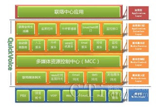 - 應(yīng)用接口層,上層應(yīng)用必須通過應(yīng)用接口調(diào)用各種媒體服務(wù),確保了應(yīng)用對下層平臺的合法調(diào)用,從而保證整個平臺的穩(wěn)定性。QuickVoice提供了豐富的簡單易用的應(yīng)用接口,使用戶可以最大限度發(fā)揮平臺功能,構(gòu)筑任意復(fù)雜的呼叫中心應(yīng)用