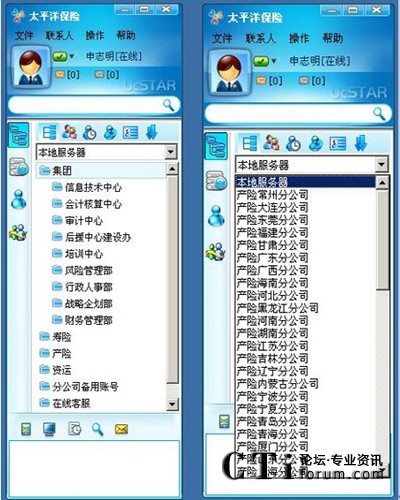 覆蓋全國的太平洋保險不僅在各省的城市有分公司,其分支機構(gòu)也遍布全國各個區(qū)縣。如何將各項政策快速有效地傳達給各個分支機構(gòu),成為保險公司信息總部一直探索的一條“路”。如何讓基層機構(gòu)也能參與日常的各項大大小小的會議,如何讓分布在全國的企業(yè)員工接受良好的培訓?傳統(tǒng)的通訊手段似乎難以滿足需要。中國太平洋保險(集團)股份有限公司是全國性股份制商業(yè)保險公司,成立于1991年4月,總部設(shè)在上海。大部分分公司已經(jīng)自行使用很多即時通訊產(chǎn)品,但由于系統(tǒng)分散,各分公司管理能力存在差異,造成目前CPIC內(nèi)部即時通訊軟件使用相對比較混亂,部分員工還存在使用MSN、QQ的現(xiàn)象,這種現(xiàn)象已經(jīng)給公司安全生產(chǎn)帶來了一定的隱患。為此,太平洋保險集團的應用理應跳出即時通信的應用,選擇一個擴展性、控制性、可管性強大的通信平臺。