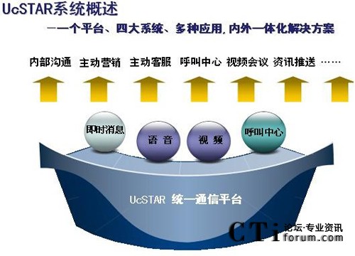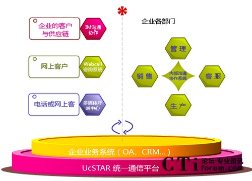 UcSTAR統(tǒng)一通信平臺(tái)是為企業(yè)提供從內(nèi)部溝通、協(xié)作與外部服務(wù)于一體的高效通信通道,并與企業(yè)的業(yè)務(wù)系統(tǒng)融合,實(shí)現(xiàn)統(tǒng)一通訊、統(tǒng)一登錄、統(tǒng)一消息、統(tǒng)一門(mén)戶的統(tǒng)一工作平臺(tái)。