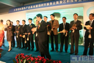 4月21日,江蘇信息服務(wù)產(chǎn)業(yè)基地暨揚州市服務(wù)業(yè)集聚區(qū)和服務(wù)業(yè)項目推介洽談會在江蘇信息服務(wù)產(chǎn)業(yè)基地(揚州)隆重召開,省信息產(chǎn)業(yè)廳副廳長龔懷進、揚州市委常委、常務(wù)副市長張京霞為省信息安全技術(shù)中心揭牌,中國網(wǎng)通集團公司總工程師滕勇,神州數(shù)碼高級副總裁陳勇,上海萬得信息股份董事長陸風等數(shù)十位集團公司老總現(xiàn)場祝賀,同時IBM、AVAYA、優(yōu)勝資訊、神州數(shù)碼等60多家企業(yè)現(xiàn)場簽定了投資合作協(xié)議,而華潤通信、中國電信、酒店無憂、漢世紀等10家企業(yè)則從廣陵區(qū)委書記孔令俊手中接過了入駐金鑰匙,成為首批入駐江蘇信息服務(wù)產(chǎn)業(yè)基地的企業(yè),至此江蘇信息服務(wù)產(chǎn)業(yè)基地迎來首發(fā)項目招商的“開門紅”,江蘇信息服務(wù)產(chǎn)業(yè)基地也因此被業(yè)界冠以中國首家專業(yè)定位信息呼叫和數(shù)據(jù)處理產(chǎn)業(yè)的“中國聲谷”的美譽。 “江蘇信息服務(wù)產(chǎn)業(yè)基地(揚州)”位于廣陵新城內(nèi),為省信息產(chǎn)業(yè)廳與揚州市政府聯(lián)手打造的中國首家專業(yè)定位于呼叫信息和數(shù)據(jù)處理產(chǎn)業(yè)的省級信息服務(wù)業(yè)基地,占地2.52平方公里,總投資50億元,處于揚州ECBD核心區(qū)域,交通便捷,區(qū)位優(yōu)勢獨特,生態(tài)環(huán)境優(yōu)美。基地按照“產(chǎn)業(yè)社區(qū)”的標準和“商務(wù)公園”的理念規(guī)劃建設(shè),重點發(fā)展信息服務(wù)產(chǎn)業(yè)及具有揚州特色的城市信息化應(yīng)用軟件和嵌入式軟件產(chǎn)業(yè),立足長三角、面向全國、服務(wù)世界,逐步發(fā)展成為全國乃至世界呼叫中心產(chǎn)業(yè)最佳實踐基地、全國生產(chǎn)性服務(wù)業(yè)的標桿示范基地及呼叫中心人才培訓(xùn)與派遣基地。