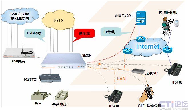 采用SE30系列的IP語音媒體交換機搭建辦公語音通信平臺,簡化了原先繁雜的語音通信系統(tǒng),可以輕而易舉地集成到用戶現(xiàn)有的網(wǎng)絡(luò)中,節(jié)省了大量的網(wǎng)絡(luò)改造成本及通訊費用。部署快捷、管理方便、功能強大、應(yīng)用靈活、降低成本等優(yōu)勢明顯;特別適用于出差、家庭辦公、移動辦公頻繁的現(xiàn)代中小型企業(yè)用戶,極容易實現(xiàn)多點異地VoIP組網(wǎng)應(yīng)用。