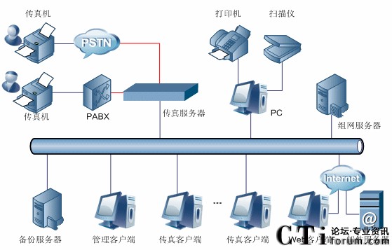 以下是三匯傳真服務器系統(tǒng)結構圖。