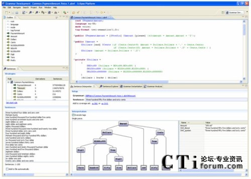 這里強(qiáng)調(diào)的Eclipse插件,除了本身作為優(yōu)秀工具,還提供了附加于Eclipse工作臺(tái)內(nèi)的順暢互操作性:你可以一邊看著對(duì)應(yīng)呼叫者輸入的對(duì)話流程,一邊檢查和完成語音識(shí)別語法;你也可以一邊構(gòu)建連接后臺(tái)的Web服務(wù)代碼,一邊通過簡單地拖放來調(diào)整應(yīng)用邏輯。開發(fā)者首次擁有了對(duì)所有應(yīng)用方面的同時(shí)控制,無須在不同IDE之間進(jìn)行切換,或者在選擇單一環(huán)境時(shí)在特性上的折衷。