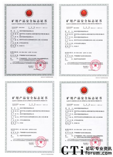 CTI論壇(ctiforum)6月15日消息(記者 楊佳林):震有科技順利通過安標(biāo)國家礦用產(chǎn)品安全標(biāo)志中心頒發(fā)礦用無線通信系統(tǒng)、礦用本安型無線基站、礦用本安型手機(jī)S1、礦用本安型手機(jī)S2的四項(xiàng)礦用產(chǎn)品安全標(biāo)志證書,這標(biāo)志著震有科技KT202礦用融合通信系統(tǒng)獲得煤礦安全領(lǐng)域的通行證,為公司大力拓展煤礦能源市場奠定了堅(jiān)實(shí)有利的基礎(chǔ)。