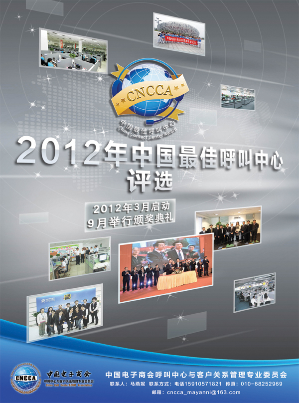 中國電子商會(huì)呼叫中心與客戶關(guān)系管理專業(yè)委員會(huì)(CNCCA)中國電子商會(huì)呼叫中心與客戶關(guān)系管理專業(yè)委員會(huì)(China Call-Center & CRM Association簡稱CNCCA),由全國從事與呼叫中心及客戶關(guān)系管理,電話客戶服務(wù)相關(guān)業(yè)務(wù)的運(yùn)營商、制造商、供應(yīng)商、用戶等單位以及一切關(guān)心和推動(dòng)中國呼叫中心和客戶關(guān)系管理事業(yè)發(fā)展的企事業(yè)單位和社會(huì)各界人士自愿組成。隸屬于工信部,由中國電子商會(huì)管理。是呼叫中心行業(yè)唯一經(jīng)中國民政部批準(zhǔn)成立的呼叫中心與客戶關(guān)系管理領(lǐng)域的行業(yè)協(xié)會(huì)。是一個(gè)非盈利性的行業(yè)組織。