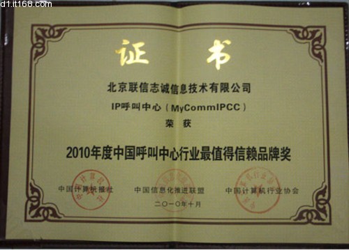 在本次評(píng)選中,北京聯(lián)信志誠(chéng)信息技術(shù)有限公司(簡(jiǎn)稱(chēng)MyComm公司),其核心產(chǎn)品MyCommIPCC獨(dú)享 2010年度中國(guó)呼叫中心行業(yè)最值得信賴(lài)品牌獎(jiǎng)。