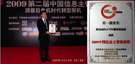 CTI論壇(ctiforum)11月25日消息(記者 張塵):2009年11月19日,2009年中國信息主管年會在北京世紀金源大飯店盛大召開,會議共吸引了各行業(yè)千名CIO線上與線下的參與。作為中國CIO云集的高峰會議,第一線安萊全程參與了本次大會,從產品方案與展示等方面向業(yè)界展示了第一線安萊10年多來在MPLS VPN服務領域的最佳實踐經驗與卓越的市場領導地位,贏得了各與會嘉賓及CIO們的普遍認同和稱贊。