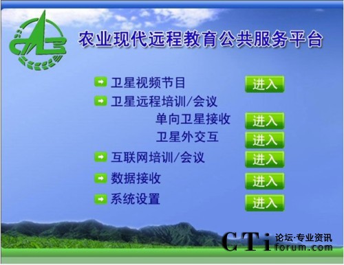 農(nóng)業(yè)現(xiàn)代遠(yuǎn)程教育平臺將先進(jìn)的多媒體寬帶DVB衛(wèi)星通信系統(tǒng)和全面的網(wǎng)絡(luò)遠(yuǎn)程教育培訓(xùn)/會議系統(tǒng),天(衛(wèi)星網(wǎng))地(互聯(lián)網(wǎng))合一,集成廣播、電視和網(wǎng)絡(luò)的功能,形成了廣覆蓋、大容量、多功能、低成本、快捷高效的遠(yuǎn)程教育培訓(xùn)網(wǎng)絡(luò)、技術(shù)培訓(xùn)資源傳輸通道和網(wǎng)絡(luò)視頻會議系統(tǒng),是面向“三農(nóng)”開展多形式多層次現(xiàn)代遠(yuǎn)程教育培訓(xùn)、科學(xué)普及、技術(shù)推廣和信息傳播的公共服務(wù)平臺。同時(shí),該平臺也是首個(gè)將視頻會議/培訓(xùn)接入衛(wèi)星網(wǎng)絡(luò)的系統(tǒng),將遠(yuǎn)程視頻會議帶入了新的通訊領(lǐng)域,也為遠(yuǎn)程視頻會議的運(yùn)用開創(chuàng)了一片新的天地。