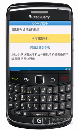 圖:通過(guò)BlackBerry Torch 9800登陸QQ同步助手