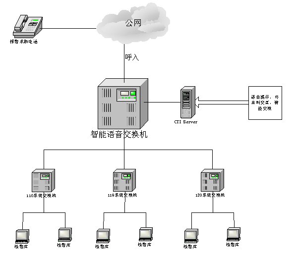 公安綜合信息呼叫中心系統(tǒng)就是在呼叫中心基礎(chǔ)上利用先進(jìn)的CTI技術(shù),將現(xiàn)存和即將開通的信息系統(tǒng)有機(jī)地整合起來;即把數(shù)字語音技術(shù)、計算機(jī)網(wǎng)絡(luò)技術(shù)、通信、交換等先進(jìn)技術(shù)結(jié)合起來,結(jié)合公安業(yè)務(wù)特點(diǎn),擴(kuò)展和增強(qiáng)公安信息應(yīng)用系統(tǒng)的功能,使現(xiàn)有數(shù)據(jù)庫資源得到充分利用;還可使一部分可以公開或應(yīng)該公開的公安信息向社會提供增值服務(wù),如出入境辦理查詢、身份證查詢、車輛駕駛員信息查詢等。本系統(tǒng)以110、119、122綜合報警服務(wù)為龍頭,以各項(xiàng)公安工作信息化為主要內(nèi)容,以公安計算機(jī)信息、通信網(wǎng)絡(luò)為依托,以對內(nèi)提供信息多種方式綜合利用、對外提供社會服務(wù)為目的,以當(dāng)前先進(jìn)的INTENNET、CTI、數(shù)據(jù)庫技術(shù)為手段,建立起的對內(nèi)統(tǒng)一受理、指揮調(diào)度、快速反應(yīng)、協(xié)同作戰(zhàn);對外警務(wù)公開、信息咨詢、查詢、投訴舉報為一體的公安綜合信息呼叫中心系統(tǒng)。