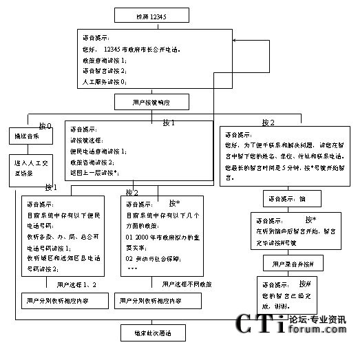 CTI論壇(ctiforum)07月10日消息: 12345政府熱線,是一個(gè)建立在開(kāi)放的系統(tǒng)平臺(tái)之上,采用全中文、圖形化交互式的操作界面,提供開(kāi)放的接口,能與其他信息、服務(wù)系統(tǒng)連接的系統(tǒng),該系統(tǒng)的設(shè)計(jì)開(kāi)發(fā)具有先進(jìn)性、安全可靠性、可擴(kuò)充性、易用性、友好性等特點(diǎn)。通過(guò)政府12345熱線的工作人員在信息系統(tǒng)的平臺(tái)上以7X24小時(shí)方式運(yùn)行工作。在該系統(tǒng)工程的設(shè)計(jì)上還要充分考慮項(xiàng)目實(shí)施后可能發(fā)生的突發(fā)性規(guī)模放大量,為未來(lái)的發(fā)展趨勢(shì),預(yù)留足夠擴(kuò)容空間,并考慮到由此可能造成的對(duì)系統(tǒng)架構(gòu)、技術(shù)實(shí)施方案、資源配置等所進(jìn)行的相應(yīng)改動(dòng),及如何提供開(kāi)發(fā)工具去滿足不同時(shí)期的需要。
