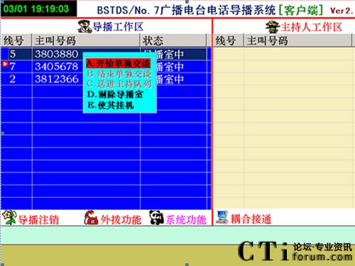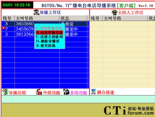 2、參與者打進(jìn)電話時,導(dǎo)播區(qū)顯示電話號碼,同時導(dǎo)播電腦的音箱會發(fā)出鈴聲,這時導(dǎo)播用鼠標(biāo)右鍵點(diǎn)擊顯示的主叫號碼會出現(xiàn)一個菜單。