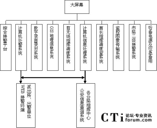 本次建設(shè)需要采用綜合通信技術(shù),將110、119、122系統(tǒng)的計(jì)算機(jī)網(wǎng)絡(luò)和有、無(wú)線(xiàn)通信網(wǎng)有機(jī)互聯(lián),建成集接處警信息獲取、統(tǒng)計(jì)、查詢(xún)、發(fā)布于一體,并通過(guò)地理信息和多媒體大屏幕顯示等輔助系統(tǒng)的綜合指揮調(diào)度,實(shí)現(xiàn)110、119、122快速反應(yīng)、信息共享的目的。為此,各系統(tǒng)應(yīng)分別具有下述功能: