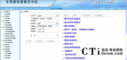 該模塊主要受理三大類業(yè)務(wù):咨詢類業(yè)務(wù)、代辦類業(yè)務(wù)和投訴建議類業(yè)務(wù),以及提供業(yè)務(wù)咨詢和業(yè)務(wù)代辦時(shí)的相關(guān)業(yè)務(wù)信息檢索和機(jī)動(dòng)車、駕駛?cè)司C合信息的查詢驗(yàn)證。