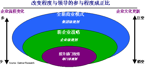成功實施CRM的第一個關(guān)鍵是贏得企業(yè)的高層支持。高層支持的項目,或稱“一把手”工程,往往能夠推行得比較順利。在我們的實施中,最經(jīng)常項目牽頭人是客戶方負責運營的老總或總經(jīng)理。企業(yè)要應(yīng)用CRM系統(tǒng),不應(yīng)當僅僅是信息部門或銷售部門內(nèi)部的事情,而應(yīng)當是整個企業(yè)在高層領(lǐng)導的直接參與指導之下的多方協(xié)同調(diào)整,因為CRM涉及的是市場、銷售、服務(wù)等多個與客戶打交道的部門和流程。企業(yè)內(nèi)部的高層管理者必須承擔起項目負責人的角色,才能讓CRM實施順利地開展,才能完成部門之間的協(xié)同,才能實現(xiàn)企業(yè)內(nèi)部的文化轉(zhuǎn)變。高層參與的程度可以由下面的圖示說明: