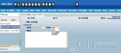 asterCC這套CATI問卷系統(tǒng)功能模塊有條不紊地歸列在坐席工作界面上,更快速地進(jìn)入工作狀態(tài),操作起來得心應(yīng)手。