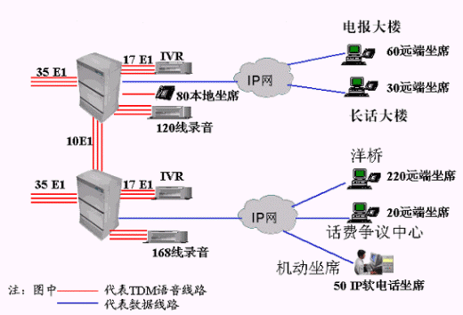 北京通信1000客戶服務中心采用合力金橋客服中心解決方案,采用模塊化的軟硬件結構、開放式平臺設計,具有豐富的接口、完善的組網(wǎng)能力及功能強大的軟件功能等優(yōu)點,設計容量可達2000個坐席。系統(tǒng)目前接入70 E1數(shù)字中繼(2100路),提供34E1(1020路) IVR自動語音服務,510個人工坐席其中本地80個,遠端360個,機動座席50個。提供全程錄音跟蹤。