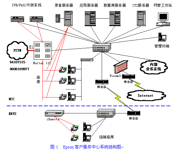 愛普生(中國)的客服系統(tǒng)采用數(shù)據(jù)集中與分散相結(jié)合、座席集中受理的方式進(jìn)行建設(shè)。其中,所有設(shè)備均配置在北京,所有座席均在北京受理客戶服務(wù)請求,