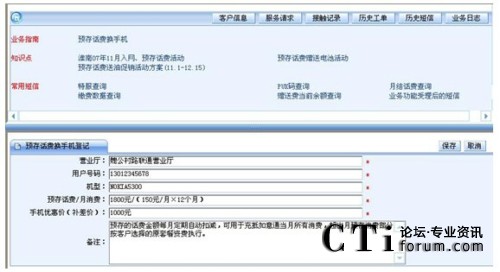 要實(shí)現(xiàn)此目的,IT支撐系統(tǒng)將高技能座席的處理能力“推送”給普通座席。第一章我們論述了IT支撐系統(tǒng)可以以客戶應(yīng)用場(chǎng)景為核心,通過(guò)分析流程分析客戶訴求找到客戶真正的需求?梢詫⑦@一思路推演下去,針對(duì)客戶的某個(gè)具體需求,呼叫中心制定統(tǒng)一的解決方案。我們以下面的“預(yù)存話費(fèi)換手機(jī)”為案例。通過(guò)先期溝通,座席已經(jīng)知曉這是客戶的真正訴求,只需要選擇好“預(yù)存話費(fèi)換手機(jī)”的業(yè)務(wù)類型,IT支撐系統(tǒng)會(huì)顯示出集成在一個(gè)頁(yè)面中的全套解決方案:處理此訴求可能用到知識(shí)庫(kù)中的三個(gè)知識(shí)點(diǎn);需要查詢的客戶信息,經(jīng)常給客戶發(fā)送的短信內(nèi)容;處理此訴求可能執(zhí)行的登記任務(wù),……