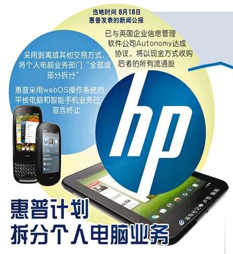 在上周五的財(cái)報(bào)會(huì)議上,惠普突然宣布三個(gè)重要決定:剝離PC業(yè)務(wù)、關(guān)閉WebOS的硬件業(yè)務(wù)、102億美元并購英國第二大軟件廠商Autonomy公司。這意味著,惠普未來將專注于軟件領(lǐng)域。